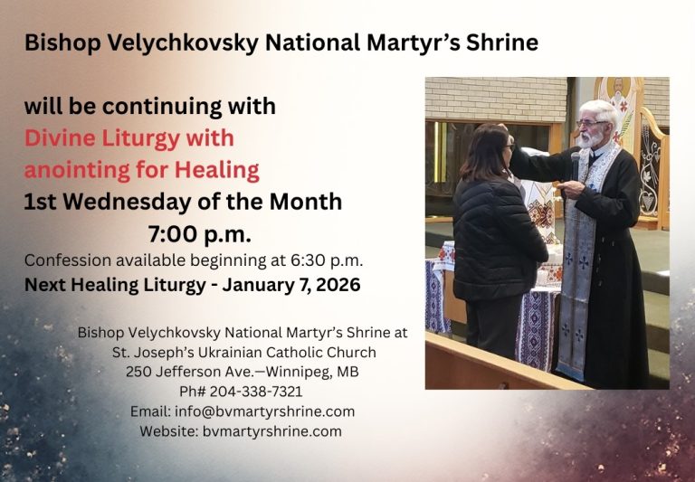 Devotional Services to Blessed Vasyl Every Wednesday at 7:00pm CST at St. Joseph’s Church or on Bishop Velychkovsky YouTube channel & Facebook